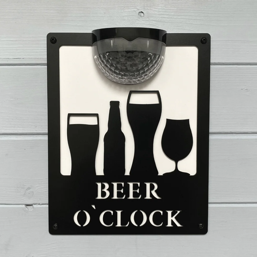 This 'Beer O'Clock' with a bright solar light is for those who use their summer houses in the right way!