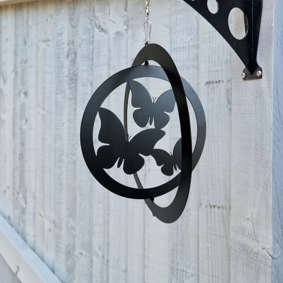 This matte black set of 2 Butterfly Hanging Silhouette Orbit Wind Spinner is perfect for anyone who loves butterflies. The intricate design and gentle spin create a stunning feature for your garden, adding a unique and elegant touch to your outdoor space.