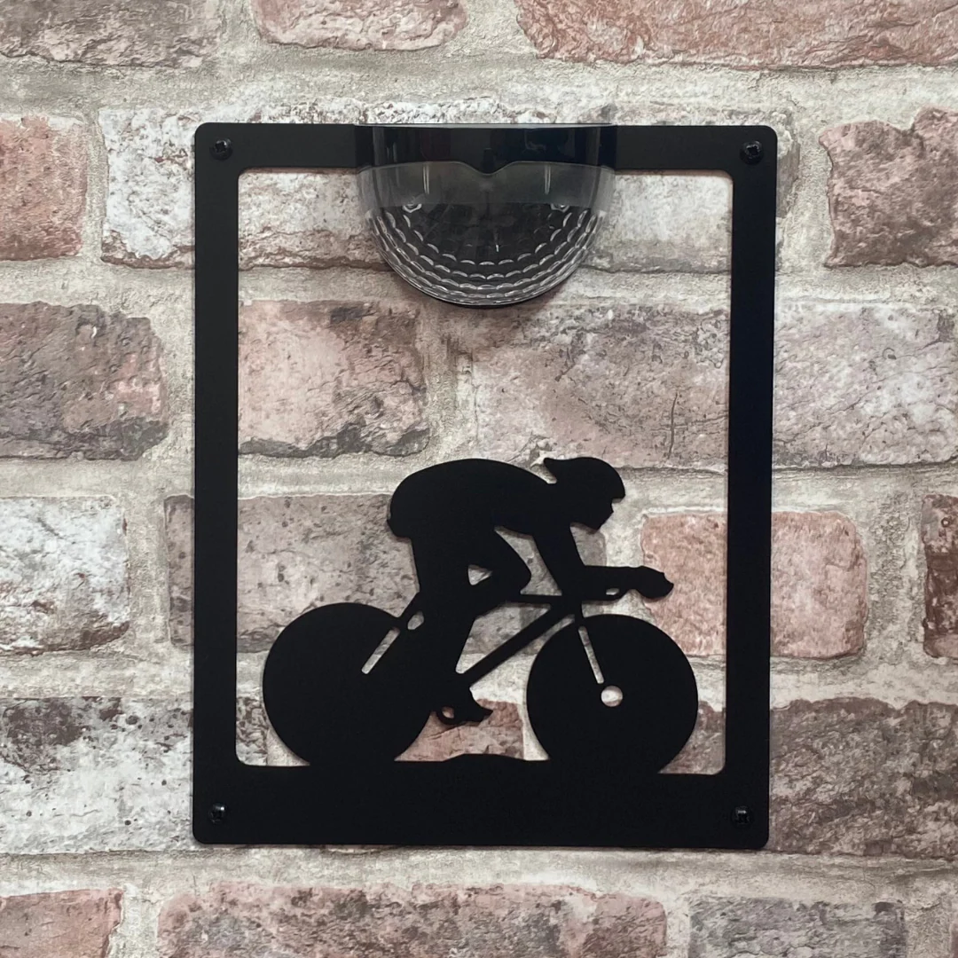 This bespoke solar light of a cyclist is a great way to add character to your garden.