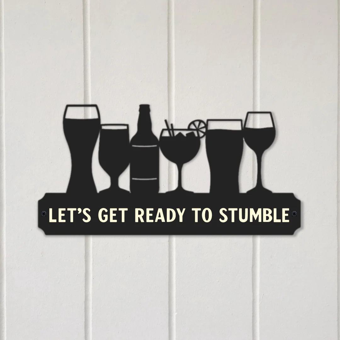 This bar sign with the text 'Let's get ready to stumble' would make the perfect addition to your outdoor space! 🍸🍹🍾