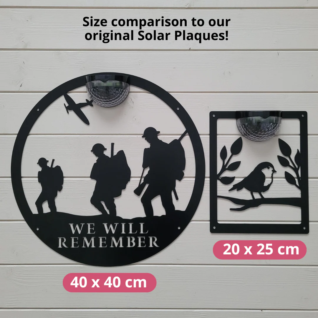 Introducing our Large Circular Solar Light Wall Plaque with the message "We Will Remember."Ā