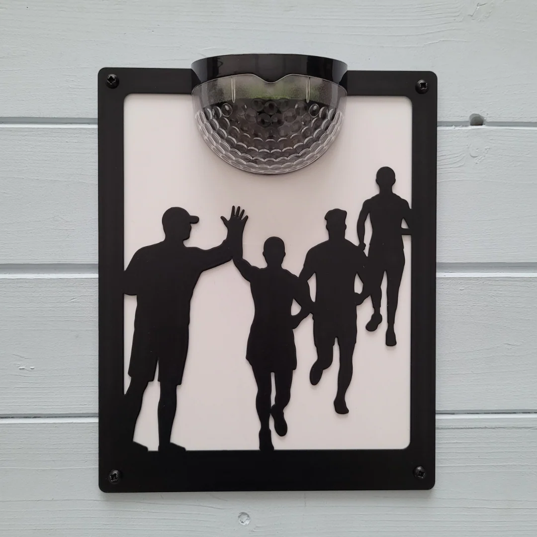 Celebrate your passion for running with our bespoke solar light featuring a group of runners, including one giving a high-five. This charming design adds a vibrant touch to your outdoor space, perfectly reflecting your active lifestyle and enthusiasm for the sport 🏃♀️🏃