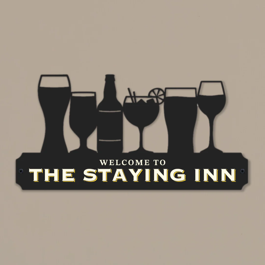 This bar sign with the text 'Welcome to the Staying Inn' would make the perfect addition to your outdoor space! 🍸🍹🍾